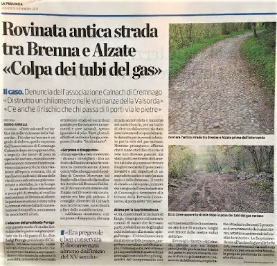 Il Consiglio Direttivo dell'Associazione ha perciò constatato con sorpresa e disappunto che una strada acciottolata ed immersa nei nostri boschi, per un tratto di oltre un chilometro, sia stata interamente ed irreparabilmente distrutta per la posa di tubature per la rete del gas-metano.